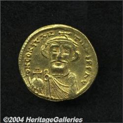 <B>Constans II.</B></I> A.D. 641-668. AV solidus (20 mm, 4.45 g). Constantinople, A.D. 650/1. Crowned facing bust, holding globus cruciger / Cross potent on three steps; Z(retrograde)/CONOB. DOC 16c; SB 953. XF. <BR><I>From the Geneva Collection.</B></I> <BR><BR><B>Important notice:</B> Heritage usually auctions material at the rate of 200-250 lots per hour. On some occasions eBay Live bid software or the Internet may not be able to keep up with the pace of the auction. We recommend placing a realistic absentee bid now as insurance to avoid disappointment. Occasionally the auctioneer may eliminate or reject an eBay Live bid, and the auctioneer may also reopen a lot after the close of the eBay live bidding (usually because we missed an audience bid), and may reject your bid even if it shows you as the winning bidder. By bidding via eBay Live, you agree that Heritage may award the lot to another bidder at its sole discretion under the circumstances described above or any other reasonable circumstances. Since eBay bids are not shown to us until we open the lot on the floor, we treat those bids just like floor bids. In most cases the floor responds before the eBay bid is presented to us, due to Internet lag time, so for consistency we have made it a policy that floor bids are always considered first over tie eBay live bids. Also please note that all Heritage lots purchased through eBay Live carry a 20% Buyer's Premium. Please make sure you read the Terms and Conditions before you bid.
