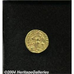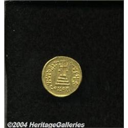 <B>Constans II.</B></I> A.D. 641-668. AV solidus (19 mm, 4.35 g). Constantinople, A.D. 651-654. Crowned facing bust, holding globus cruciger / Cross potent on three steps; S/CONOB. DOC 19f; SB 956. Near XF. <BR><I>From the Geneva Collection.</B></I> <BR><BR><B>Important notice:</B> Heritage usually auctions material at the rate of 200-250 lots per hour. On some occasions eBay Live bid software or the Internet may not be able to keep up with the pace of the auction. We recommend placing a realistic absentee bid now as insurance to avoid disappointment. Occasionally the auctioneer may eliminate or reject an eBay Live bid, and the auctioneer may also reopen a lot after the close of the eBay live bidding (usually because we missed an audience bid), and may reject your bid even if it shows you as the winning bidder. By bidding via eBay Live, you agree that Heritage may award the lot to another bidder at its sole discretion under the circumstances described above or any other reasonable circumstances. Since eBay bids are not shown to us until we open the lot on the floor, we treat those bids just like floor bids. In most cases the floor responds before the eBay bid is presented to us, due to Internet lag time, so for consistency we have made it a policy that floor bids are always considered first over tie eBay live bids. Also please note that all Heritage lots purchased through eBay Live carry a 20% Buyer's Premium. Please make sure you read the Terms and Conditions before you bid.