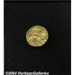 <B>Constans II.</B></I> A.D. 641-668. AV solidus (20 mm, 4.38 g). Constantinople, A.D. 654-659. Crowned facing busts of Constans and Constantine; cross between their heads / Cross potent on three steps; (Delta)/CONOB. DOC 25d; SB 959. XF. <BR><I>From the Geneva Collection.</B></I> <BR><BR><B>Important notice:</B> Heritage usually auctions material at the rate of 200-250 lots per hour. On some occasions eBay Live bid software or the Internet may not be able to keep up with the pace of the auction. We recommend placing a realistic absentee bid now as insurance to avoid disappointment. Occasionally the auctioneer may eliminate or reject an eBay Live bid, and the auctioneer may also reopen a lot after the close of the eBay live bidding (usually because we missed an audience bid), and may reject your bid even if it shows you as the winning bidder. By bidding via eBay Live, you agree that Heritage may award the lot to another bidder at its sole discretion under the circumstances described above or any other reasonable circumstances. Since eBay bids are not shown to us until we open the lot on the floor, we treat those bids just like floor bids. In most cases the floor responds before the eBay bid is presented to us, due to Internet lag time, so for consistency we have made it a policy that floor bids are always considered first over tie eBay live bids. Also please note that all Heritage lots purchased through eBay Live carry a 20% Buyer's Premium. Please make sure you read the Terms and Conditions before you bid.