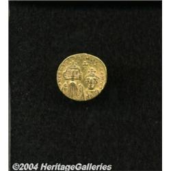 <B>Constans II.</B></I> A.D. 641-668. AV solidus (20 mm, 4.44 g). Constantinople, A.D. 654-659. Crowned facing busts of Constans and Constantine; cross between their heads / Cross potent on three steps; E/CONOB. DOC 25d; SB 959. VF, graffiti in fields. <BR><I>From the Geneva Collection.</B></I> <BR><BR><B>Important notice:</B> Heritage usually auctions material at the rate of 200-250 lots per hour. On some occasions eBay Live bid software or the Internet may not be able to keep up with the pace of the auction. We recommend placing a realistic absentee bid now as insurance to avoid disappointment. Occasionally the auctioneer may eliminate or reject an eBay Live bid, and the auctioneer may also reopen a lot after the close of the eBay live bidding (usually because we missed an audience bid), and may reject your bid even if it shows you as the winning bidder. By bidding via eBay Live, you agree that Heritage may award the lot to another bidder at its sole discretion under the circumstances described above or any other reasonable circumstances. Since eBay bids are not shown to us until we open the lot on the floor, we treat those bids just like floor bids. In most cases the floor responds before the eBay bid is presented to us, due to Internet lag time, so for consistency we have made it a policy that floor bids are always considered first over tie eBay live bids. Also please note that all Heritage lots purchased through eBay Live carry a 20% Buyer's Premium. Please make sure you read the Terms and Conditions before you bid.