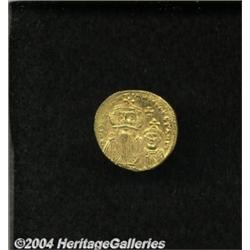 <B>Constans II.</B></I> A.D. 641-668. AV solidus (20 mm, 4.49 g). Constantinople, A.D. 654-659. Crowned facing busts of Constans and Constantine; cross between their heads / Cross potent on three steps; E/CONOB. DOC 25e; SB 959. Good XF. <BR><I>From the Geneva Collection.</B></I> <BR><BR><B>Important notice:</B> Heritage usually auctions material at the rate of 200-250 lots per hour. On some occasions eBay Live bid software or the Internet may not be able to keep up with the pace of the auction. We recommend placing a realistic absentee bid now as insurance to avoid disappointment. Occasionally the auctioneer may eliminate or reject an eBay Live bid, and the auctioneer may also reopen a lot after the close of the eBay live bidding (usually because we missed an audience bid), and may reject your bid even if it shows you as the winning bidder. By bidding via eBay Live, you agree that Heritage may award the lot to another bidder at its sole discretion under the circumstances described above or any other reasonable circumstances. Since eBay bids are not shown to us until we open the lot on the floor, we treat those bids just like floor bids. In most cases the floor responds before the eBay bid is presented to us, due to Internet lag time, so for consistency we have made it a policy that floor bids are always considered first over tie eBay live bids. Also please note that all Heritage lots purchased through eBay Live carry a 20% Buyer's Premium. Please make sure you read the Terms and Conditions before you bid.