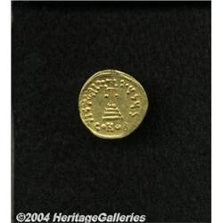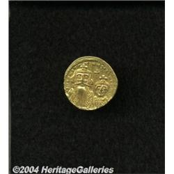 <B>Constans II.</B></I> A.D. 641-668. AV solidus (21 mm, 4.43 g). Constantinople, A.D. 654-659. Crowned facing busts of Constans and Constantine; cross between their heads / Cross potent on three steps; S/CONOB. DOC 25e; SB 959. XF, small graffito in reverse field. <BR><I>From the Geneva Collection.</B></I> <BR><BR><B>Important notice:</B> Heritage usually auctions material at the rate of 200-250 lots per hour. On some occasions eBay Live bid software or the Internet may not be able to keep up with the pace of the auction. We recommend placing a realistic absentee bid now as insurance to avoid disappointment. Occasionally the auctioneer may eliminate or reject an eBay Live bid, and the auctioneer may also reopen a lot after the close of the eBay live bidding (usually because we missed an audience bid), and may reject your bid even if it shows you as the winning bidder. By bidding via eBay Live, you agree that Heritage may award the lot to another bidder at its sole discretion under the circumstances described above or any other reasonable circumstances. Since eBay bids are not shown to us until we open the lot on the floor, we treat those bids just like floor bids. In most cases the floor responds before the eBay bid is presented to us, due to Internet lag time, so for consistency we have made it a policy that floor bids are always considered first over tie eBay live bids. Also please note that all Heritage lots purchased through eBay Live carry a 20% Buyer's Premium. Please make sure you read the Terms and Conditions before you bid.
