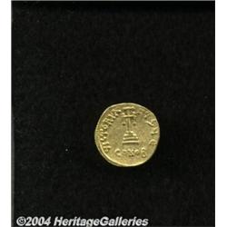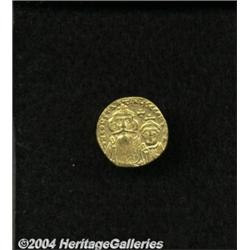 <B>Constans II.</B></I> A.D. 641-668. AV solidus (19 mm, 4.33 g). Constantinople, A.D. 654-659. Crowned facing busts of Constans and Constantine; cross between their heads / Cross potent on three steps; E/CONOB. DOC 25e; SB 959. VF, reverse graffito, minor clipping. <BR><I>From the Geneva Collection.</B></I> <BR><BR><B>Important notice:</B> Heritage usually auctions material at the rate of 200-250 lots per hour. On some occasions eBay Live bid software or the Internet may not be able to keep up with the pace of the auction. We recommend placing a realistic absentee bid now as insurance to avoid disappointment. Occasionally the auctioneer may eliminate or reject an eBay Live bid, and the auctioneer may also reopen a lot after the close of the eBay live bidding (usually because we missed an audience bid), and may reject your bid even if it shows you as the winning bidder. By bidding via eBay Live, you agree that Heritage may award the lot to another bidder at its sole discretion under the circumstances described above or any other reasonable circumstances. Since eBay bids are not shown to us until we open the lot on the floor, we treat those bids just like floor bids. In most cases the floor responds before the eBay bid is presented to us, due to Internet lag time, so for consistency we have made it a policy that floor bids are always considered first over tie eBay live bids. Also please note that all Heritage lots purchased through eBay Live carry a 20% Buyer's Premium. Please make sure you read the Terms and Conditions before you bid.
