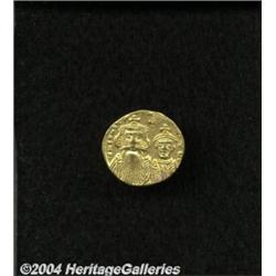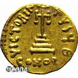 <B>Constans II.</B></I> A.D. 641-668. AV solidus (20 mm, 4.43 g). Constantinople, A.D. 654-659. Crowned facing busts of Constans and Constantine; cross between their heads / Cross potent on three steps; (Theta)/CONOB. DOC 25i; SB 959. Near XF. <BR><I>From the Geneva Collection.</B></I> <BR><BR><B>Important notice:</B> Heritage usually auctions material at the rate of 200-250 lots per hour. On some occasions eBay Live bid software or the Internet may not be able to keep up with the pace of the auction. We recommend placing a realistic absentee bid now as insurance to avoid disappointment. Occasionally the auctioneer may eliminate or reject an eBay Live bid, and the auctioneer may also reopen a lot after the close of the eBay live bidding (usually because we missed an audience bid), and may reject your bid even if it shows you as the winning bidder. By bidding via eBay Live, you agree that Heritage may award the lot to another bidder at its sole discretion under the circumstances described above or any other reasonable circumstances. Since eBay bids are not shown to us until we open the lot on the floor, we treat those bids just like floor bids. In most cases the floor responds before the eBay bid is presented to us, due to Internet lag time, so for consistency we have made it a policy that floor bids are always considered first over tie eBay live bids. Also please note that all Heritage lots purchased through eBay Live carry a 20% Buyer's Premium. Please make sure you read the Terms and Conditions before you bid.