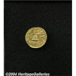 <B>Constans II.</B></I> A.D. 641-668. AV solidus (19 mm, 4.44 g). Constantinople, A.D. 654-659. Crowned facing busts of Constans and Constantine; cross between their heads / Cross potent on three steps; I/CONOBI. DOC 26 var. (officina not listed); SB 960. Choice XF. <BR><I>From the Geneva Collection.</B></I> <BR><BR><B>Important notice:</B> Heritage usually auctions material at the rate of 200-250 lots per hour. On some occasions eBay Live bid software or the Internet may not be able to keep up with the pace of the auction. We recommend placing a realistic absentee bid now as insurance to avoid disappointment. Occasionally the auctioneer may eliminate or reject an eBay Live bid, and the auctioneer may also reopen a lot after the close of the eBay live bidding (usually because we missed an audience bid), and may reject your bid even if it shows you as the winning bidder. By bidding via eBay Live, you agree that Heritage may award the lot to another bidder at its sole discretion under the circumstances described above or any other reasonable circumstances. Since eBay bids are not shown to us until we open the lot on the floor, we treat those bids just like floor bids. In most cases the floor responds before the eBay bid is presented to us, due to Internet lag time, so for consistency we have made it a policy that floor bids are always considered first over tie eBay live bids. Also please note that all Heritage lots purchased through eBay Live carry a 20% Buyer's Premium. Please make sure you read the Terms and Conditions before you bid.