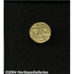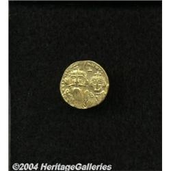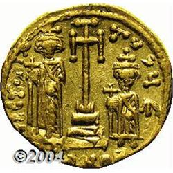 <B>Constans II.</B></I> A.D. 641-668. AV solidus (20 mm, 4.21 g). Constantinople, ca. A.D. 661-663. Facing busts of Constans, wearing plumed helmet, and Constantine, crowned; cross between their heads / Cross potent on three steps between Heraclius and Tiberius, each holding globus cruciger; E/CONOB. DOC 30 var. (officina not listed); SB 964. VF, clipped. <BR><I>From the Geneva Collection.</B></I> <BR><BR><B>Important notice:</B> Heritage usually auctions material at the rate of 200-250 lots per hour. On some occasions eBay Live bid software or the Internet may not be able to keep up with the pace of the auction. We recommend placing a realistic absentee bid now as insurance to avoid disappointment. Occasionally the auctioneer may eliminate or reject an eBay Live bid, and the auctioneer may also reopen a lot after the close of the eBay live bidding (usually because we missed an audience bid), and may reject your bid even if it shows you as the winning bidder. By bidding via eBay Live, you agree that Heritage may award the lot to another bidder at its sole discretion under the circumstances described above or any other reasonable circumstances. Since eBay bids are not shown to us until we open the lot on the floor, we treat those bids just like floor bids. In most cases the floor responds before the eBay bid is presented to us, due to Internet lag time, so for consistency we have made it a policy that floor bids are always considered first over tie eBay live bids. Also please note that all Heritage lots purchased through eBay Live carry a 20% Buyer's Premium. Please make sure you read the Terms and Conditions before you bid.