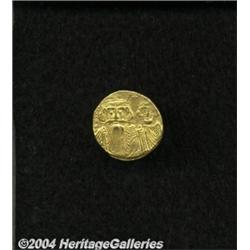 <B>Constans II.</B></I> A.D. 641-668. AV solidus (19 mm, 4.37 g). Constantinople, ca. A.D. 661-663. Facing busts of Constans, wearing plumed helmet, and Constantine, crowned; cross between their heads / Cross potent on three steps between Heraclius and Tiberius, each holding globus cruciger; ?/CONOB. Cf. DOC 30; SB 964. VF, graffito in reverse field. <BR><I>From the Geneva Collection.</B></I> <BR><BR><B>Important notice:</B> Heritage usually auctions material at the rate of 200-250 lots per hour. On some occasions eBay Live bid software or the Internet may not be able to keep up with the pace of the auction. We recommend placing a realistic absentee bid now as insurance to avoid disappointment. Occasionally the auctioneer may eliminate or reject an eBay Live bid, and the auctioneer may also reopen a lot after the close of the eBay live bidding (usually because we missed an audience bid), and may reject your bid even if it shows you as the winning bidder. By bidding via eBay Live, you agree that Heritage may award the lot to another bidder at its sole discretion under the circumstances described above or any other reasonable circumstances. Since eBay bids are not shown to us until we open the lot on the floor, we treat those bids just like floor bids. In most cases the floor responds before the eBay bid is presented to us, due to Internet lag time, so for consistency we have made it a policy that floor bids are always considered first over tie eBay live bids. Also please note that all Heritage lots purchased through eBay Live carry a 20% Buyer's Premium. Please make sure you read the Terms and Conditions before you bid.