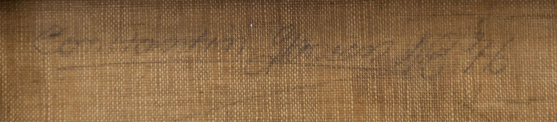 Oil on canvas, framed. Featuring a landscape scene of beach with boat. Signed C. Hansen on the lower right corner. Label affixed to stretcher bar inscribed CONSTANTIN HANSEN. Inscribed in pencil on canvas Constantin Hansen and dated 1876, verso. Attributed to Carl Christian Constantin Hansen (1804-1880, Danish). 17.5 x 42 cm (6.9 x 16.5 inches). Framed size: 27 x 22 cm (10.6 x 8.7 inches). PROVENANCE: Private European collection