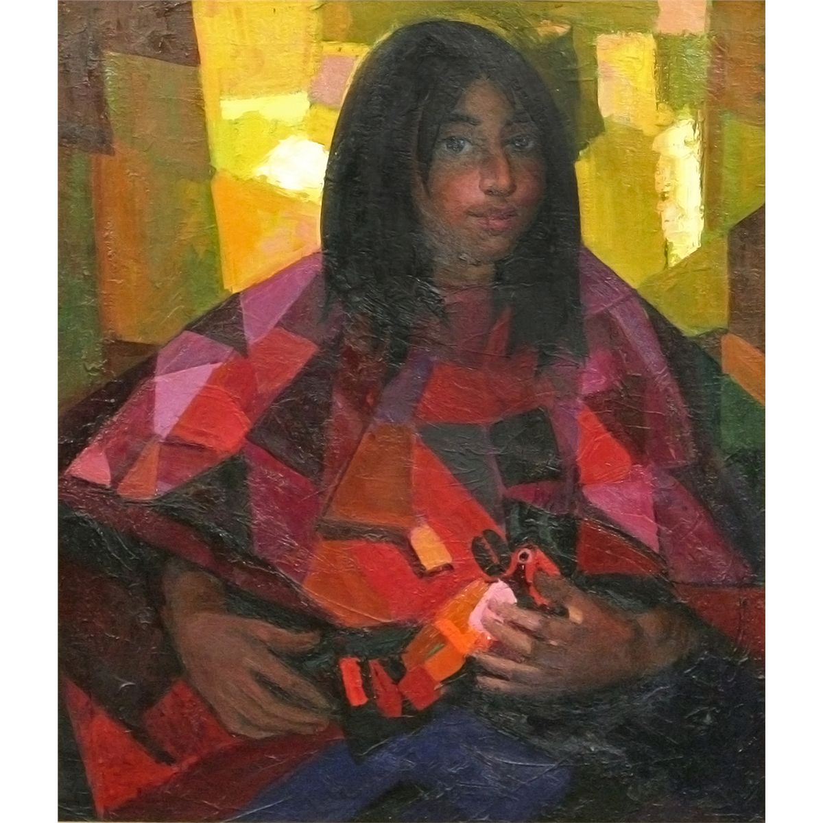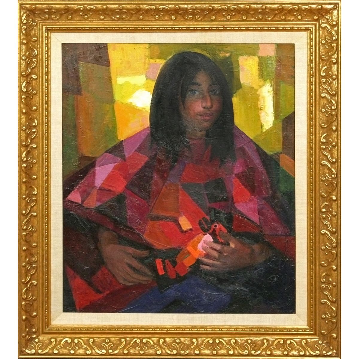 Constantine Cherkas (1919 - 2011). Indian Girl with Kachina. 24" x 20" oil on canvas. Signed lower right: C. CHERKAS.