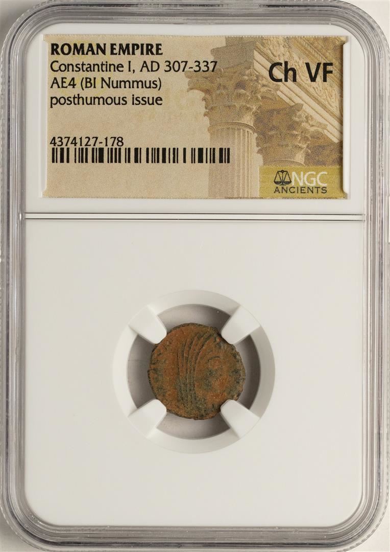 One Constantine I, 307-337 AD Ancient Roman Empire Coin NGC Ch VF. NGC Certified.