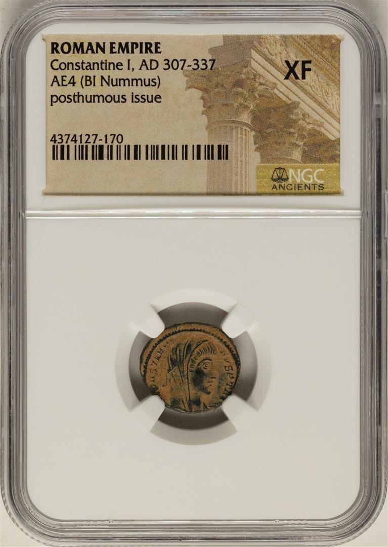 One Constantine I, 307-337 AD Ancient Roman Empire Coin NGC XF. NGC Certified.