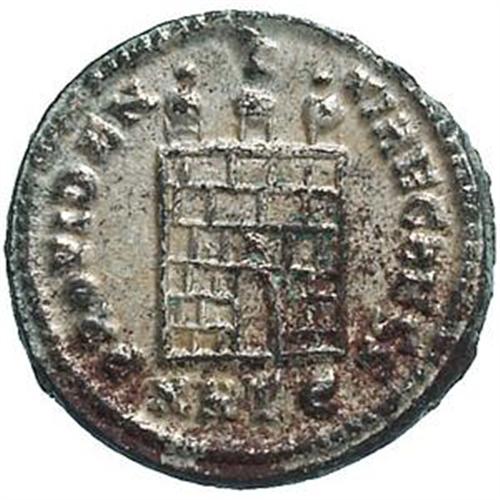 Roman Empire Coins. Constantine II (337-340). AE 19 mm. Heraclea. D/ Busto piccolo laureato a sinistra, con mappa e scettro. R/ PROVIDENTIAE CAESS. Porta d'accampamento. In esergo: MHTE. RIC 20. gr. 3.28 AE. qFDC.
