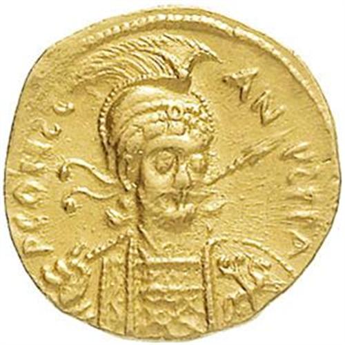 Monete Bizantine. Constantine IV (668-685). Solido, Constantinople. D/ P CONSTANYS PPA. Busto frontale, con il volto tre quarti a destra, indossa elmo piumato e corazza e tiene lancia e scudo. R/ VICTORA (sic) AVGY B. Croce potenziata su tre gradini. In esergo: CONOB. D.O. 12, 14. gr. 4.26 AU. qSPL/SPL. Fondi lucenti.