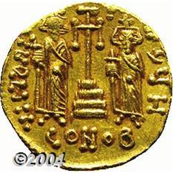 <B>Constantine IV.</B></I> A.D. 668-685. AV solidus (20 mm, 4.39 g). Constantinople, A.D. 668-673. Helmeted and cuirassed bust facing slightly right, holding spear / Cross potent on three steps between standing figures of Heraclius and Tiberius; H/CONOB. DOC 6g; SB 1153. XF. <BR><I>From the Geneva Collection.</B></I> <BR><BR><B>Important notice:</B> Heritage usually auctions material at the rate of 200-250 lots per hour. On some occasions eBay Live bid software or the Internet may not be able to keep up with the pace of the auction. We recommend placing a realistic absentee bid now as insurance to avoid disappointment. Occasionally the auctioneer may eliminate or reject an eBay Live bid, and the auctioneer may also reopen a lot after the close of the eBay live bidding (usually because we missed an audience bid), and may reject your bid even if it shows you as the winning bidder. By bidding via eBay Live, you agree that Heritage may award the lot to another bidder at its sole discretion under the circumstances described above or any other reasonable circumstances. Since eBay bids are not shown to us until we open the lot on the floor, we treat those bids just like floor bids. In most cases the floor responds before the eBay bid is presented to us, due to Internet lag time, so for consistency we have made it a policy that floor bids are always considered first over tie eBay live bids. Also please note that all Heritage lots purchased through eBay Live carry a 20% Buyer's Premium. Please make sure you read the Terms and Conditions before you bid.