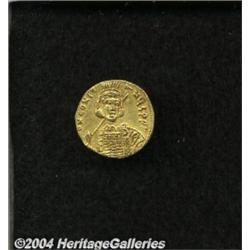 <B>Constantine IV.</B></I> A.D. 668-685. AV solidus (20 mm, 4.39 g). Constantinople, A.D. 668-673. Helmeted and cuirassed bust facing slightly right, holding spear / Cross potent on three steps between standing figures of Heraclius and Tiberius; H/CONOB. DOC 6g; SB 1153. XF. <BR><I>From the Geneva Collection.</B></I> <BR><BR><B>Important notice:</B> Heritage usually auctions material at the rate of 200-250 lots per hour. On some occasions eBay Live bid software or the Internet may not be able to keep up with the pace of the auction. We recommend placing a realistic absentee bid now as insurance to avoid disappointment. Occasionally the auctioneer may eliminate or reject an eBay Live bid, and the auctioneer may also reopen a lot after the close of the eBay live bidding (usually because we missed an audience bid), and may reject your bid even if it shows you as the winning bidder. By bidding via eBay Live, you agree that Heritage may award the lot to another bidder at its sole discretion under the circumstances described above or any other reasonable circumstances. Since eBay bids are not shown to us until we open the lot on the floor, we treat those bids just like floor bids. In most cases the floor responds before the eBay bid is presented to us, due to Internet lag time, so for consistency we have made it a policy that floor bids are always considered first over tie eBay live bids. Also please note that all Heritage lots purchased through eBay Live carry a 20% Buyer's Premium. Please make sure you read the Terms and Conditions before you bid.