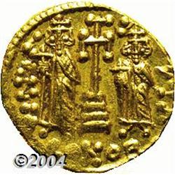 <B>Constantine IV.</B></I> A.D. 668-685. AV solidus (19 mm, 4.36 g). Constantinople, A.D. 674-681. Helmeted and cuirassed bust facing slightly right, holding spear and shield decorated with horseman spearing a fallen enemy / Cross potent on three steps between standing figures of Heraclius and Tiberius; A/CONOB. DOC 8a; SB 1154. XF. <BR><I>From the Geneva Collection.</B></I> <BR><BR><B>Important notice:</B> Heritage usually auctions material at the rate of 200-250 lots per hour. On some occasions eBay Live bid software or the Internet may not be able to keep up with the pace of the auction. We recommend placing a realistic absentee bid now as insurance to avoid disappointment. Occasionally the auctioneer may eliminate or reject an eBay Live bid, and the auctioneer may also reopen a lot after the close of the eBay live bidding (usually because we missed an audience bid), and may reject your bid even if it shows you as the winning bidder. By bidding via eBay Live, you agree that Heritage may award the lot to another bidder at its sole discretion under the circumstances described above or any other reasonable circumstances. Since eBay bids are not shown to us until we open the lot on the floor, we treat those bids just like floor bids. In most cases the floor responds before the eBay bid is presented to us, due to Internet lag time, so for consistency we have made it a policy that floor bids are always considered first over tie eBay live bids. Also please note that all Heritage lots purchased through eBay Live carry a 20% Buyer's Premium. Please make sure you read the Terms and Conditions before you bid.