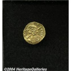 <B>Constantine IV.</B></I> A.D. 668-685. AV solidus (19 mm, 4.36 g). Constantinople, A.D. 674-681. Helmeted and cuirassed bust facing slightly right, holding spear and shield decorated with horseman spearing a fallen enemy / Cross potent on three steps between standing figures of Heraclius and Tiberius; A/CONOB. DOC 8a; SB 1154. XF. <BR><I>From the Geneva Collection.</B></I> <BR><BR><B>Important notice:</B> Heritage usually auctions material at the rate of 200-250 lots per hour. On some occasions eBay Live bid software or the Internet may not be able to keep up with the pace of the auction. We recommend placing a realistic absentee bid now as insurance to avoid disappointment. Occasionally the auctioneer may eliminate or reject an eBay Live bid, and the auctioneer may also reopen a lot after the close of the eBay live bidding (usually because we missed an audience bid), and may reject your bid even if it shows you as the winning bidder. By bidding via eBay Live, you agree that Heritage may award the lot to another bidder at its sole discretion under the circumstances described above or any other reasonable circumstances. Since eBay bids are not shown to us until we open the lot on the floor, we treat those bids just like floor bids. In most cases the floor responds before the eBay bid is presented to us, due to Internet lag time, so for consistency we have made it a policy that floor bids are always considered first over tie eBay live bids. Also please note that all Heritage lots purchased through eBay Live carry a 20% Buyer's Premium. Please make sure you read the Terms and Conditions before you bid.