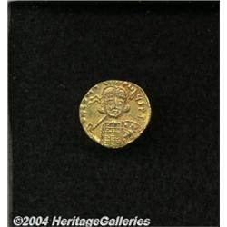<B>Constantine IV.</B></I> A.D. 668-685. AV solidus (19 mm, 4.35 g). Constantinople, A.D. 674-681. Helmeted and cuirassed bust facing slightly right, holding spear and shield decorated with horseman spearing a fallen enemy / Cross potent on three steps between standing figures of Heraclius and Tiberius; I/CONOB. DOC 8e; SB 1154. XF, clear details. <BR><I>From the Geneva Collection.</B></I> <BR><BR><B>Important notice:</B> Heritage usually auctions material at the rate of 200-250 lots per hour. On some occasions eBay Live bid software or the Internet may not be able to keep up with the pace of the auction. We recommend placing a realistic absentee bid now as insurance to avoid disappointment. Occasionally the auctioneer may eliminate or reject an eBay Live bid, and the auctioneer may also reopen a lot after the close of the eBay live bidding (usually because we missed an audience bid), and may reject your bid even if it shows you as the winning bidder. By bidding via eBay Live, you agree that Heritage may award the lot to another bidder at its sole discretion under the circumstances described above or any other reasonable circumstances. Since eBay bids are not shown to us until we open the lot on the floor, we treat those bids just like floor bids. In most cases the floor responds before the eBay bid is presented to us, due to Internet lag time, so for consistency we have made it a policy that floor bids are always considered first over tie eBay live bids. Also please note that all Heritage lots purchased through eBay Live carry a 20% Buyer's Premium. Please make sure you read the Terms and Conditions before you bid.