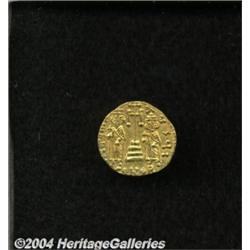 <B>Constantine IV.</B></I> A.D. 668-685. AV solidus (19 mm, 4.35 g). Constantinople, A.D. 674-681. Helmeted and cuirassed bust facing slightly right, holding spear and shield decorated with horseman spearing a fallen enemy / Cross potent on three steps between standing figures of Heraclius and Tiberius; I/CONOB. DOC 8e; SB 1154. XF, clear details. <BR><I>From the Geneva Collection.</B></I> <BR><BR><B>Important notice:</B> Heritage usually auctions material at the rate of 200-250 lots per hour. On some occasions eBay Live bid software or the Internet may not be able to keep up with the pace of the auction. We recommend placing a realistic absentee bid now as insurance to avoid disappointment. Occasionally the auctioneer may eliminate or reject an eBay Live bid, and the auctioneer may also reopen a lot after the close of the eBay live bidding (usually because we missed an audience bid), and may reject your bid even if it shows you as the winning bidder. By bidding via eBay Live, you agree that Heritage may award the lot to another bidder at its sole discretion under the circumstances described above or any other reasonable circumstances. Since eBay bids are not shown to us until we open the lot on the floor, we treat those bids just like floor bids. In most cases the floor responds before the eBay bid is presented to us, due to Internet lag time, so for consistency we have made it a policy that floor bids are always considered first over tie eBay live bids. Also please note that all Heritage lots purchased through eBay Live carry a 20% Buyer's Premium. Please make sure you read the Terms and Conditions before you bid.