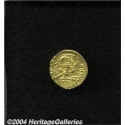 <B>Constantine IV.</B></I> A.D. 668-685. AV solidus (19 mm, 4.32 g). Constantinople, A.D. 674-681. Helmeted and cuirassed bust facing slightly right, holding spear and shield decorated with horseman spearing a fallen enemy / Cross potent on three steps between standing figures of Heraclius and Tiberius; B/CONOB. DOC 10 var. (officina not listed); SB 1156. VF.<BR><I>From the Geneva Collection.</B></I> <BR><BR><B>Important notice:</B> Heritage usually auctions material at the rate of 200-250 lots per hour. On some occasions eBay Live bid software or the Internet may not be able to keep up with the pace of the auction. We recommend placing a realistic absentee bid now as insurance to avoid disappointment. Occasionally the auctioneer may eliminate or reject an eBay Live bid, and the auctioneer may also reopen a lot after the close of the eBay live bidding (usually because we missed an audience bid), and may reject your bid even if it shows you as the winning bidder. By bidding via eBay Live, you agree that Heritage may award the lot to another bidder at its sole discretion under the circumstances described above or any other reasonable circumstances. Since eBay bids are not shown to us until we open the lot on the floor, we treat those bids just like floor bids. In most cases the floor responds before the eBay bid is presented to us, due to Internet lag time, so for consistency we have made it a policy that floor bids are always considered first over tie eBay live bids. Also please note that all Heritage lots purchased through eBay Live carry a 20% Buyer's Premium. Please make sure you read the Terms and Conditions before you bid.