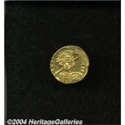 <B>Constantine IV.</B></I> A.D. 668-685. AV solidus (19 mm, 4.39 g). Constantinople, A.D. 674-681. Helmeted and cuirassed bust facing slightly right, holding spear and shield decorated with horseman spearing a fallen enemy / Cross potent on three steps between standing figures of Heraclius and Tiberius; ?/CONOB. Cf. DOC 10; SB 1156. XF. <BR><I>From the Geneva Collection.</B></I> <BR><BR><B>Important notice:</B> Heritage usually auctions material at the rate of 200-250 lots per hour. On some occasions eBay Live bid software or the Internet may not be able to keep up with the pace of the auction. We recommend placing a realistic absentee bid now as insurance to avoid disappointment. Occasionally the auctioneer may eliminate or reject an eBay Live bid, and the auctioneer may also reopen a lot after the close of the eBay live bidding (usually because we missed an audience bid), and may reject your bid even if it shows you as the winning bidder. By bidding via eBay Live, you agree that Heritage may award the lot to another bidder at its sole discretion under the circumstances described above or any other reasonable circumstances. Since eBay bids are not shown to us until we open the lot on the floor, we treat those bids just like floor bids. In most cases the floor responds before the eBay bid is presented to us, due to Internet lag time, so for consistency we have made it a policy that floor bids are always considered first over tie eBay live bids. Also please note that all Heritage lots purchased through eBay Live carry a 20% Buyer's Premium. Please make sure you read the Terms and Conditions before you bid.