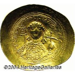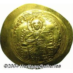 <B>Constantine IX.</B></I> 1042-1055. AV histamenon nomisma (29 mm, 4.31 g). Constantinople. Christ seated facing on lyre-backed throne, raising right hand in benediction and holding Gospels / Bust of Constantine facing, holding labarum and globus cruciger. DOC 2a; SB 1829. Good VF. <BR><I>From the Geneva Collection.</B></I> <BR><BR><B>Important notice:</B> Heritage usually auctions material at the rate of 200-250 lots per hour. On some occasions eBay Live bid software or the Internet may not be able to keep up with the pace of the auction. We recommend placing a realistic absentee bid now as insurance to avoid disappointment. Occasionally the auctioneer may eliminate or reject an eBay Live bid, and the auctioneer may also reopen a lot after the close of the eBay live bidding (usually because we missed an audience bid), and may reject your bid even if it shows you as the winning bidder. By bidding via eBay Live, you agree that Heritage may award the lot to another bidder at its sole discretion under the circumstances described above or any other reasonable circumstances. Since eBay bids are not shown to us until we open the lot on the floor, we treat those bids just like floor bids. In most cases the floor responds before the eBay bid is presented to us, due to Internet lag time, so for consistency we have made it a policy that floor bids are always considered first over tie eBay live bids. Also please note that all Heritage lots purchased through eBay Live carry a 20% Buyer's Premium. Please make sure you read the Terms and Conditions before you bid.