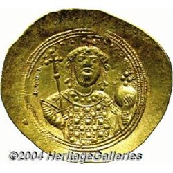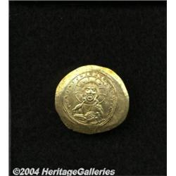 <B>Constantine IX.</B></I> 1042-1055. AV histamenon nomisma (29 mm, 4.38 g). Constantinople. Bust of Christ facing, raising right hand in benediction and holding Gospels / Bust of Constantine facing, holding long cross and globus cruciger. DOC 3; SB 1830. Good XF. <BR><I>From the Geneva Collection.</B></I> <BR><BR><B>Important notice:</B> Heritage usually auctions material at the rate of 200-250 lots per hour. On some occasions eBay Live bid software or the Internet may not be able to keep up with the pace of the auction. We recommend placing a realistic absentee bid now as insurance to avoid disappointment. Occasionally the auctioneer may eliminate or reject an eBay Live bid, and the auctioneer may also reopen a lot after the close of the eBay live bidding (usually because we missed an audience bid), and may reject your bid even if it shows you as the winning bidder. By bidding via eBay Live, you agree that Heritage may award the lot to another bidder at its sole discretion under the circumstances described above or any other reasonable circumstances. Since eBay bids are not shown to us until we open the lot on the floor, we treat those bids just like floor bids. In most cases the floor responds before the eBay bid is presented to us, due to Internet lag time, so for consistency we have made it a policy that floor bids are always considered first over tie eBay live bids. Also please note that all Heritage lots purchased through eBay Live carry a 20% Buyer's Premium. Please make sure you read the Terms and Conditions before you bid.