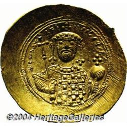 <B>Constantine IX.</B></I> 1042-1055. AV histamenon nomisma (30 mm, 4.37 g). Constantinople. Bust of Christ facing, raising right hand in benediction and holding Gospels / Bust of Constantine facing, holding long cross and globus cruciger. DOC 3; SB 1830. Good XF. <BR><I>From the Geneva Collection.</B></I> <BR><BR><B>Important notice:</B> Heritage usually auctions material at the rate of 200-250 lots per hour. On some occasions eBay Live bid software or the Internet may not be able to keep up with the pace of the auction. We recommend placing a realistic absentee bid now as insurance to avoid disappointment. Occasionally the auctioneer may eliminate or reject an eBay Live bid, and the auctioneer may also reopen a lot after the close of the eBay live bidding (usually because we missed an audience bid), and may reject your bid even if it shows you as the winning bidder. By bidding via eBay Live, you agree that Heritage may award the lot to another bidder at its sole discretion under the circumstances described above or any other reasonable circumstances. Since eBay bids are not shown to us until we open the lot on the floor, we treat those bids just like floor bids. In most cases the floor responds before the eBay bid is presented to us, due to Internet lag time, so for consistency we have made it a policy that floor bids are always considered first over tie eBay live bids. Also please note that all Heritage lots purchased through eBay Live carry a 20% Buyer's Premium. Please make sure you read the Terms and Conditions before you bid.