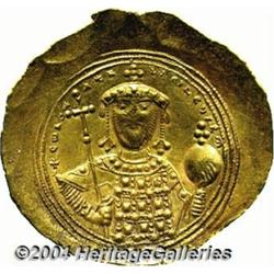 <B>Constantine IX.</B></I> 1042-1055. AV histamenon nomisma (28 mm, 4.38 g). Constantinople. Bust of Christ facing, raising right hand in benediction and holding Gospels / Bust of Constantine facing, holding long cross and globus cruciger. DOC 3; SB 1830. XF. <BR><I>From the Geneva Collection.</B></I> <BR><BR><B>Important notice:</B> Heritage usually auctions material at the rate of 200-250 lots per hour. On some occasions eBay Live bid software or the Internet may not be able to keep up with the pace of the auction. We recommend placing a realistic absentee bid now as insurance to avoid disappointment. Occasionally the auctioneer may eliminate or reject an eBay Live bid, and the auctioneer may also reopen a lot after the close of the eBay live bidding (usually because we missed an audience bid), and may reject your bid even if it shows you as the winning bidder. By bidding via eBay Live, you agree that Heritage may award the lot to another bidder at its sole discretion under the circumstances described above or any other reasonable circumstances. Since eBay bids are not shown to us until we open the lot on the floor, we treat those bids just like floor bids. In most cases the floor responds before the eBay bid is presented to us, due to Internet lag time, so for consistency we have made it a policy that floor bids are always considered first over tie eBay live bids. Also please note that all Heritage lots purchased through eBay Live carry a 20% Buyer's Premium. Please make sure you read the Terms and Conditions before you bid.