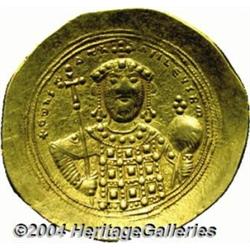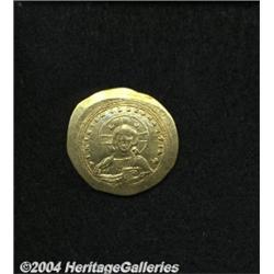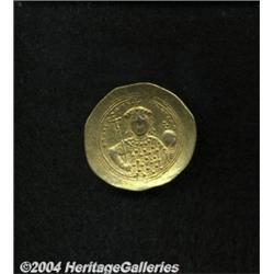 <B>Constantine IX.</B></I> 1042-1055. AV histamenon nomisma (27 mm, 4.40 g). Constantinople. Bust of Christ facing, raising right hand in benediction and holding Gospels / Bust of Constantine facing, holding long cross and globus cruciger. DOC 3; SB 1830. Near XF. <BR><I>From the Geneva Collection.</B></I> <BR><BR><B>Important notice:</B> Heritage usually auctions material at the rate of 200-250 lots per hour. On some occasions eBay Live bid software or the Internet may not be able to keep up with the pace of the auction. We recommend placing a realistic absentee bid now as insurance to avoid disappointment. Occasionally the auctioneer may eliminate or reject an eBay Live bid, and the auctioneer may also reopen a lot after the close of the eBay live bidding (usually because we missed an audience bid), and may reject your bid even if it shows you as the winning bidder. By bidding via eBay Live, you agree that Heritage may award the lot to another bidder at its sole discretion under the circumstances described above or any other reasonable circumstances. Since eBay bids are not shown to us until we open the lot on the floor, we treat those bids just like floor bids. In most cases the floor responds before the eBay bid is presented to us, due to Internet lag time, so for consistency we have made it a policy that floor bids are always considered first over tie eBay live bids. Also please note that all Heritage lots purchased through eBay Live carry a 20% Buyer's Premium. Please make sure you read the Terms and Conditions before you bid.