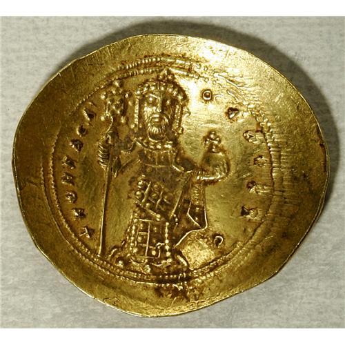 <B>Constantine X.</B></I> 1059-1067. AV histamenon nomisma (27 mm, 4.38 g). Constantinople. Nimbate bust of Christ facing, holding Gospels / Constantine standing facing on footstool, holding labarum and globus cruciger. DOC 1b; SB 1847. <B>Good VF,</B></I> minor encrustation on reverse.<BR><BR><b>Shipping:</b> Coin/Currency (<a target="_blank" href="http://www.heritageauctions.com/common/shipping.php">view shipping information</a>)