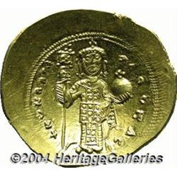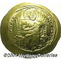 <B>Constantine X.</B></I> 1059-1067. AV histamenon nomisma (26 mm, 4.36 g). Constantinople. Nimbate bust of Christ facing, holding Gospels / Constantine standing facing on footstool, holding labarum and globus cruciger. DOC 1a; SB 1847. Choice XF. <BR><I>From the Geneva Collection.</B></I> <BR><BR><B>Important notice:</B> Heritage usually auctions material at the rate of 200-250 lots per hour. On some occasions eBay Live bid software or the Internet may not be able to keep up with the pace of the auction. We recommend placing a realistic absentee bid now as insurance to avoid disappointment. Occasionally the auctioneer may eliminate or reject an eBay Live bid, and the auctioneer may also reopen a lot after the close of the eBay live bidding (usually because we missed an audience bid), and may reject your bid even if it shows you as the winning bidder. By bidding via eBay Live, you agree that Heritage may award the lot to another bidder at its sole discretion under the circumstances described above or any other reasonable circumstances. Since eBay bids are not shown to us until we open the lot on the floor, we treat those bids just like floor bids. In most cases the floor responds before the eBay bid is presented to us, due to Internet lag time, so for consistency we have made it a policy that floor bids are always considered first over tie eBay live bids. Also please note that all Heritage lots purchased through eBay Live carry a 20% Buyer's Premium. Please make sure you read the Terms and Conditions before you bid.