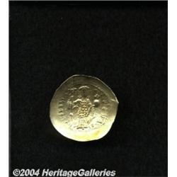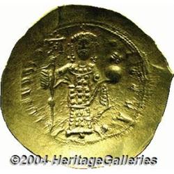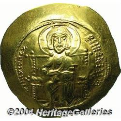 <B>Constantine X.</B></I> 1059-1067. AV histamenon nomisma (25 mm, 4.42 g). Constantinople. Nimbate bust of Christ facing, holding Gospels / Constantine standing facing on footstool, holding labarum and globus cruciger; pellet on shaft of labarum. DOC 1b; SB 1847. Good VF. <BR><I>From the Geneva Collection.</B></I> <BR><BR><B>Important notice:</B> Heritage usually auctions material at the rate of 200-250 lots per hour. On some occasions eBay Live bid software or the Internet may not be able to keep up with the pace of the auction. We recommend placing a realistic absentee bid now as insurance to avoid disappointment. Occasionally the auctioneer may eliminate or reject an eBay Live bid, and the auctioneer may also reopen a lot after the close of the eBay live bidding (usually because we missed an audience bid), and may reject your bid even if it shows you as the winning bidder. By bidding via eBay Live, you agree that Heritage may award the lot to another bidder at its sole discretion under the circumstances described above or any other reasonable circumstances. Since eBay bids are not shown to us until we open the lot on the floor, we treat those bids just like floor bids. In most cases the floor responds before the eBay bid is presented to us, due to Internet lag time, so for consistency we have made it a policy that floor bids are always considered first over tie eBay live bids. Also please note that all Heritage lots purchased through eBay Live carry a 20% Buyer's Premium. Please make sure you read the Terms and Conditions before you bid.
