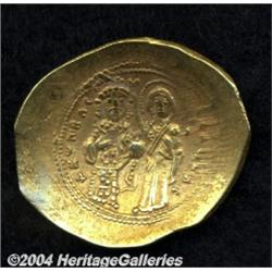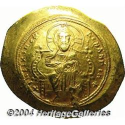 <B>Constantine X.</B></I> 1059-1067. AV histamenon nomisma (26 mm, 4.33 g). Constantinople. Nimbate bust of Christ facing, holding Gospels / Constantine standing facing, holding globus cruciger, being crowned by the Virgin standing facing. DOC 2; SB 1848. Good VF. <BR><I>From the Geneva Collection.</B></I> <BR><BR><B>Important notice:</B> Heritage usually auctions material at the rate of 200-250 lots per hour. On some occasions eBay Live bid software or the Internet may not be able to keep up with the pace of the auction. We recommend placing a realistic absentee bid now as insurance to avoid disappointment. Occasionally the auctioneer may eliminate or reject an eBay Live bid, and the auctioneer may also reopen a lot after the close of the eBay live bidding (usually because we missed an audience bid), and may reject your bid even if it shows you as the winning bidder. By bidding via eBay Live, you agree that Heritage may award the lot to another bidder at its sole discretion under the circumstances described above or any other reasonable circumstances. Since eBay bids are not shown to us until we open the lot on the floor, we treat those bids just like floor bids. In most cases the floor responds before the eBay bid is presented to us, due to Internet lag time, so for consistency we have made it a policy that floor bids are always considered first over tie eBay live bids. Also please note that all Heritage lots purchased through eBay Live carry a 20% Buyer's Premium. Please make sure you read the Terms and Conditions before you bid.