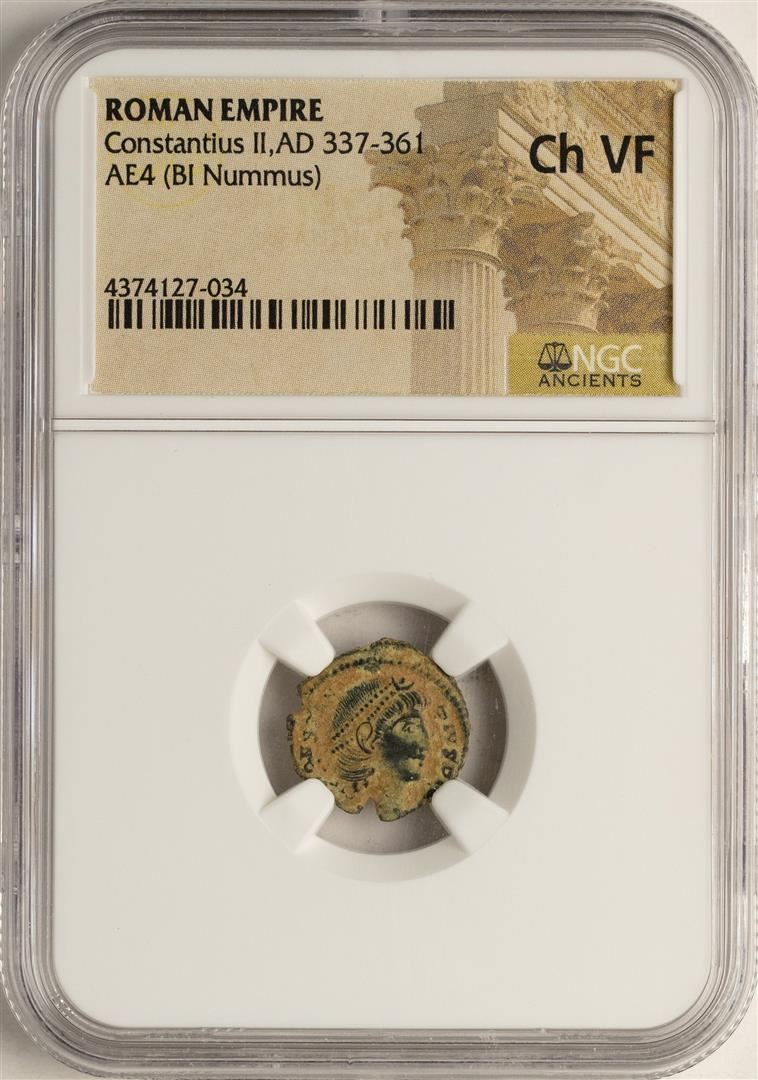 One Constantius II, 337-361 AD Ancient Roman Empire Coin NGC Ch VF. NGC Certified.