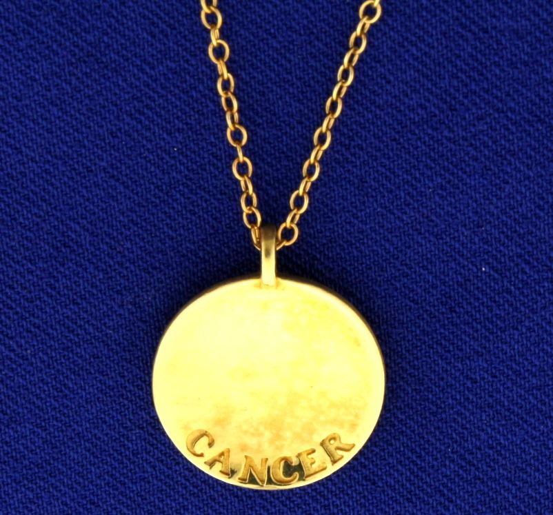 In 18k yellow gold, containing 4 high quality 0.02ct diamonds. Chain is 16 inches long and pendant is 3/4 inches long. 6.0g.