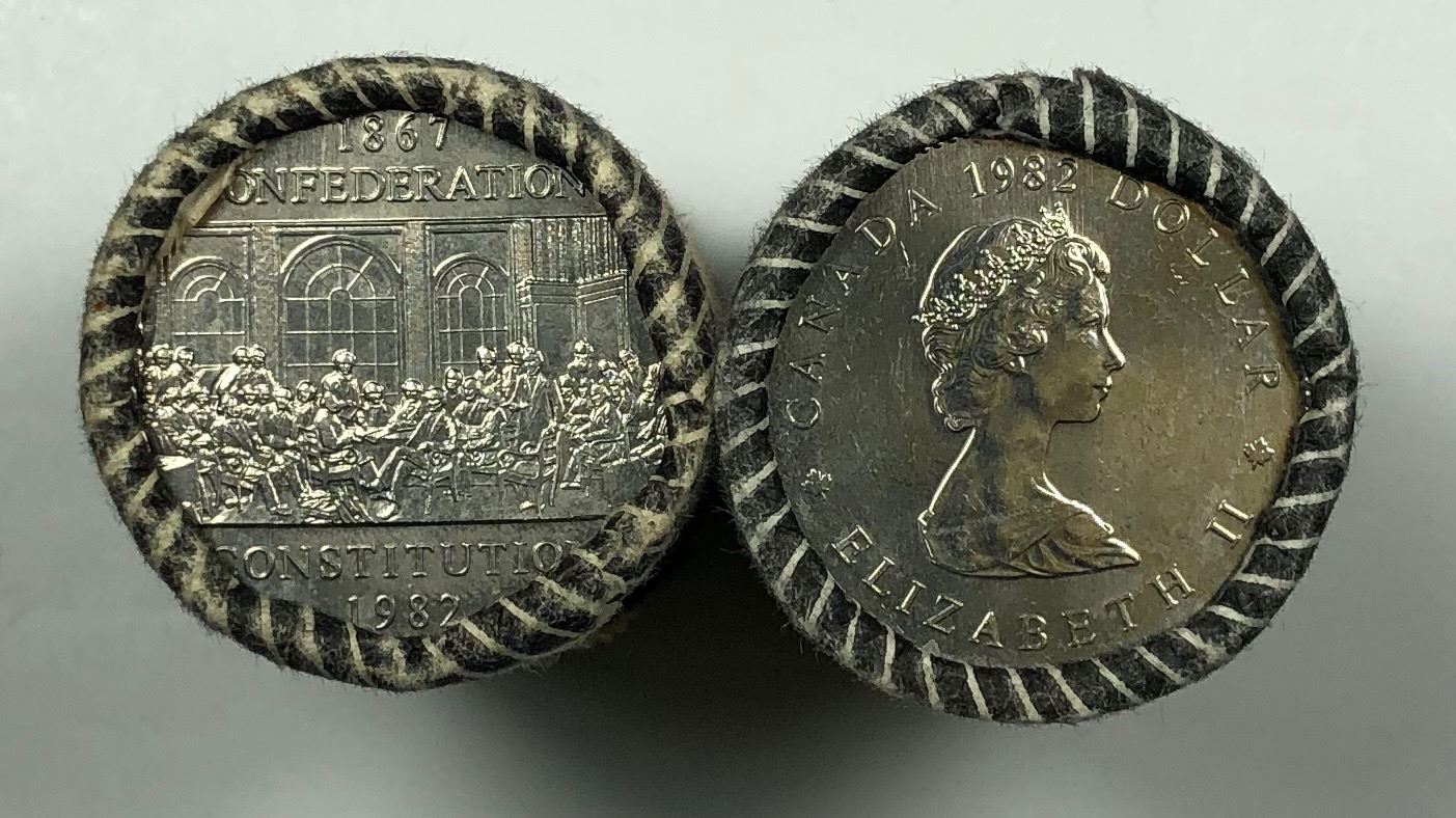2 Roll Lot - Canadian Coin Roll: $1 Nickel, "1982 Constitution", "1984 Cartier". 2 Pcs.
