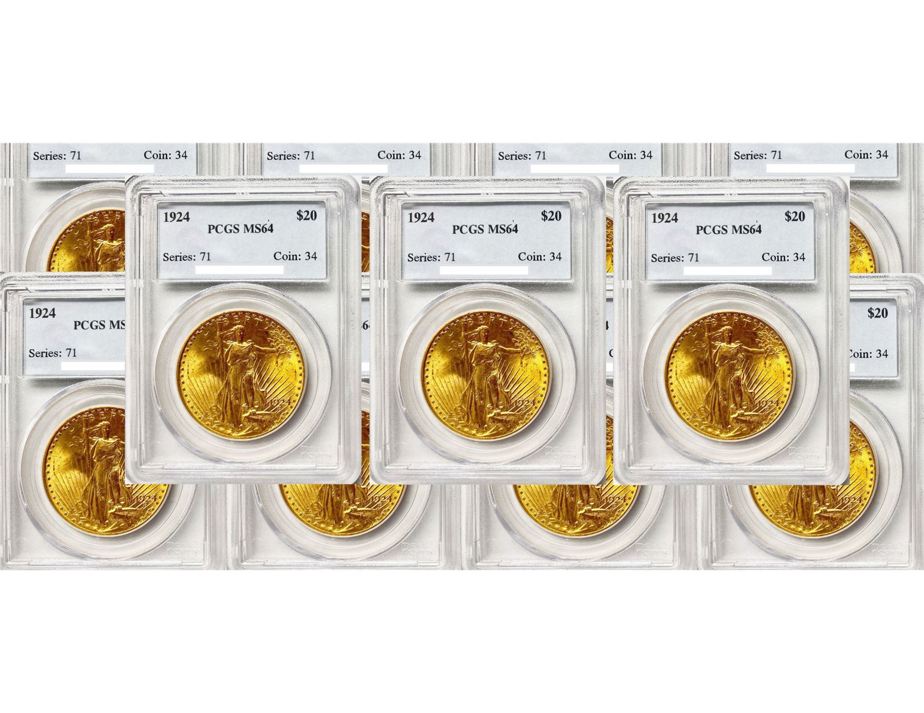 Winner of auction shall receive a lot of (10-coins) $20.00 Gold Saint Gaudens, precisely resembling the coins shown in pictures.