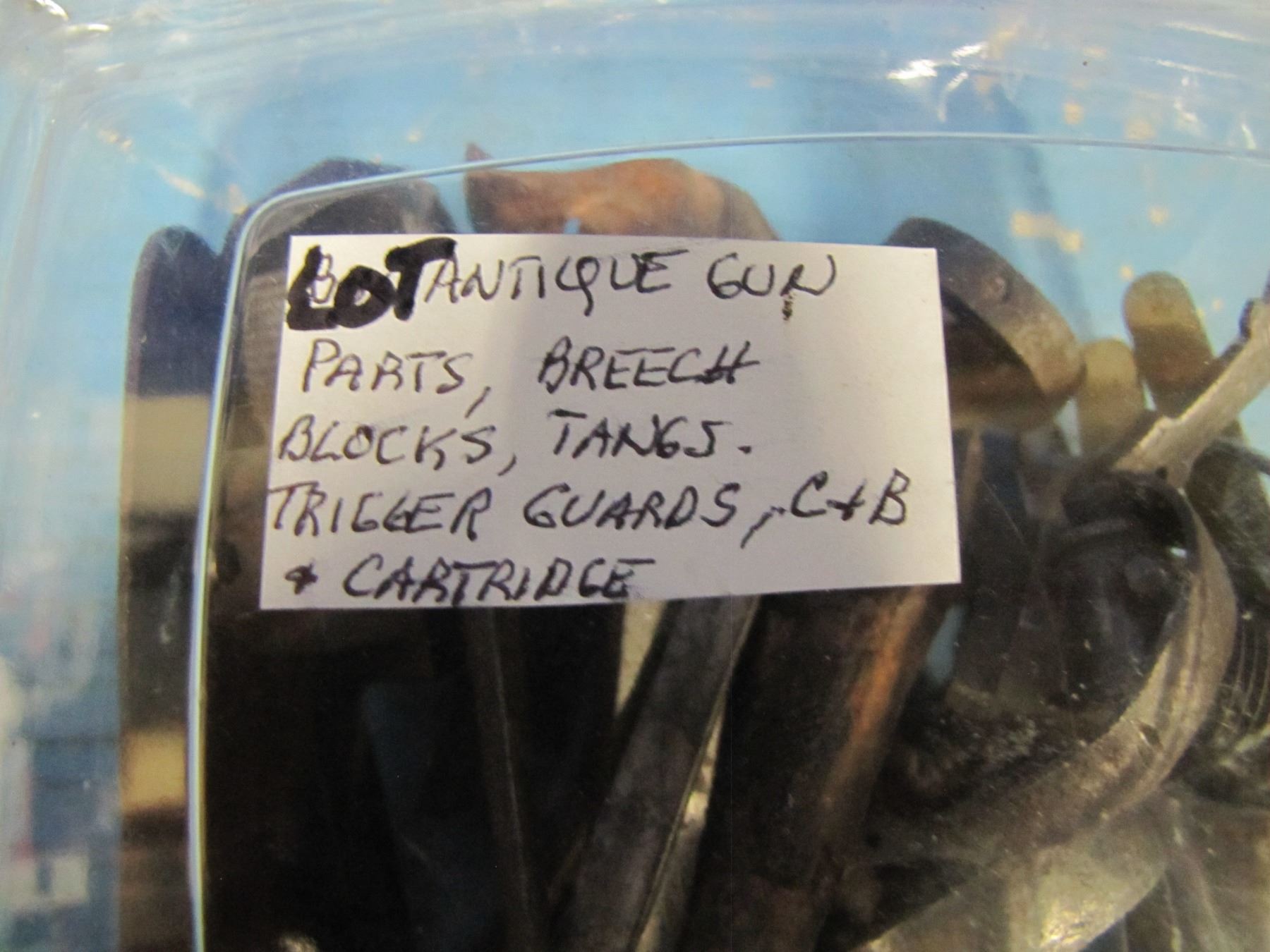 Container- Antique gun parts, Breech blocks, tanes, trigger guards, cap & ball & cartridge