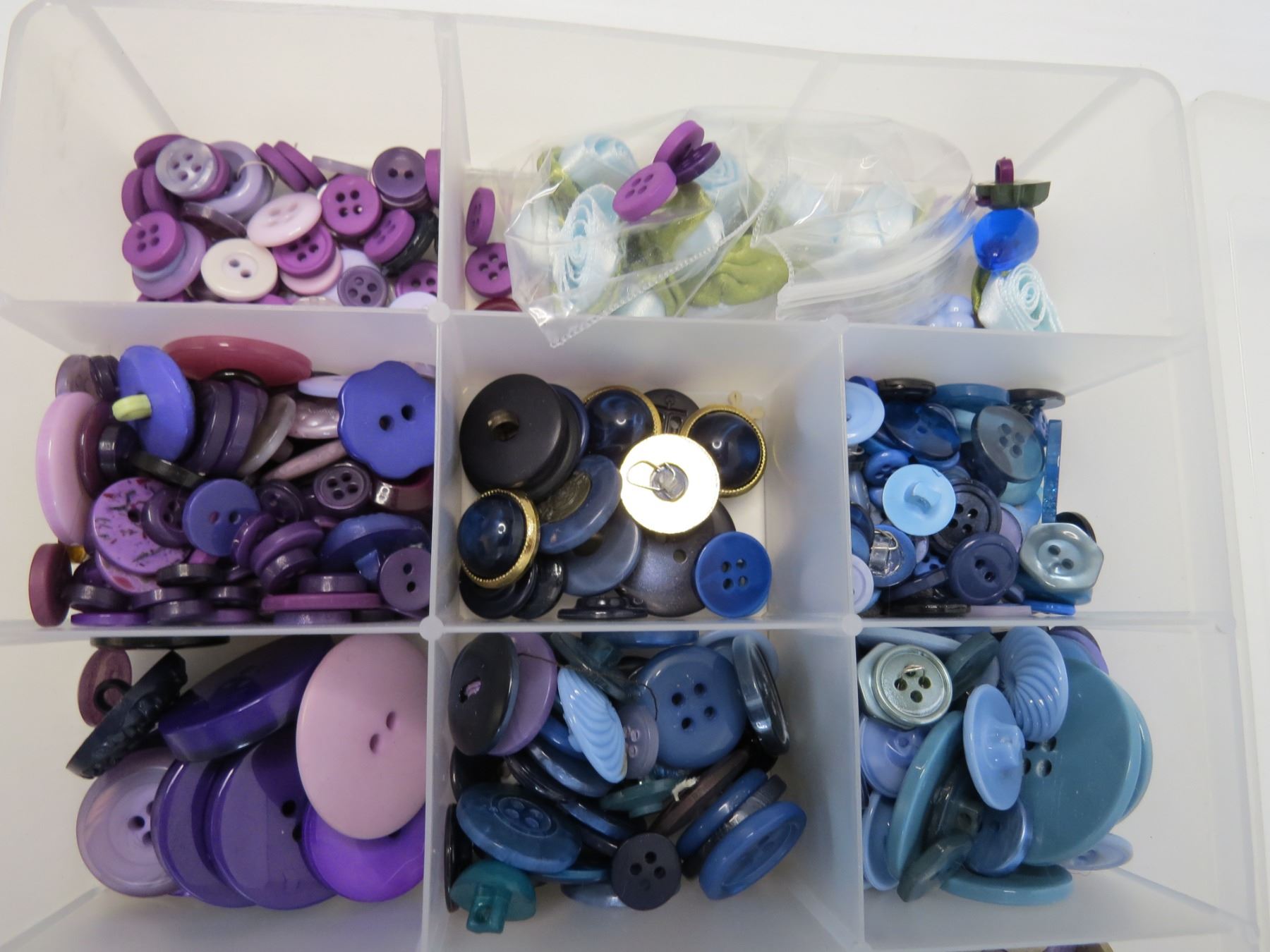Container of Assorted Buttons (Purple & Brown & Blue)