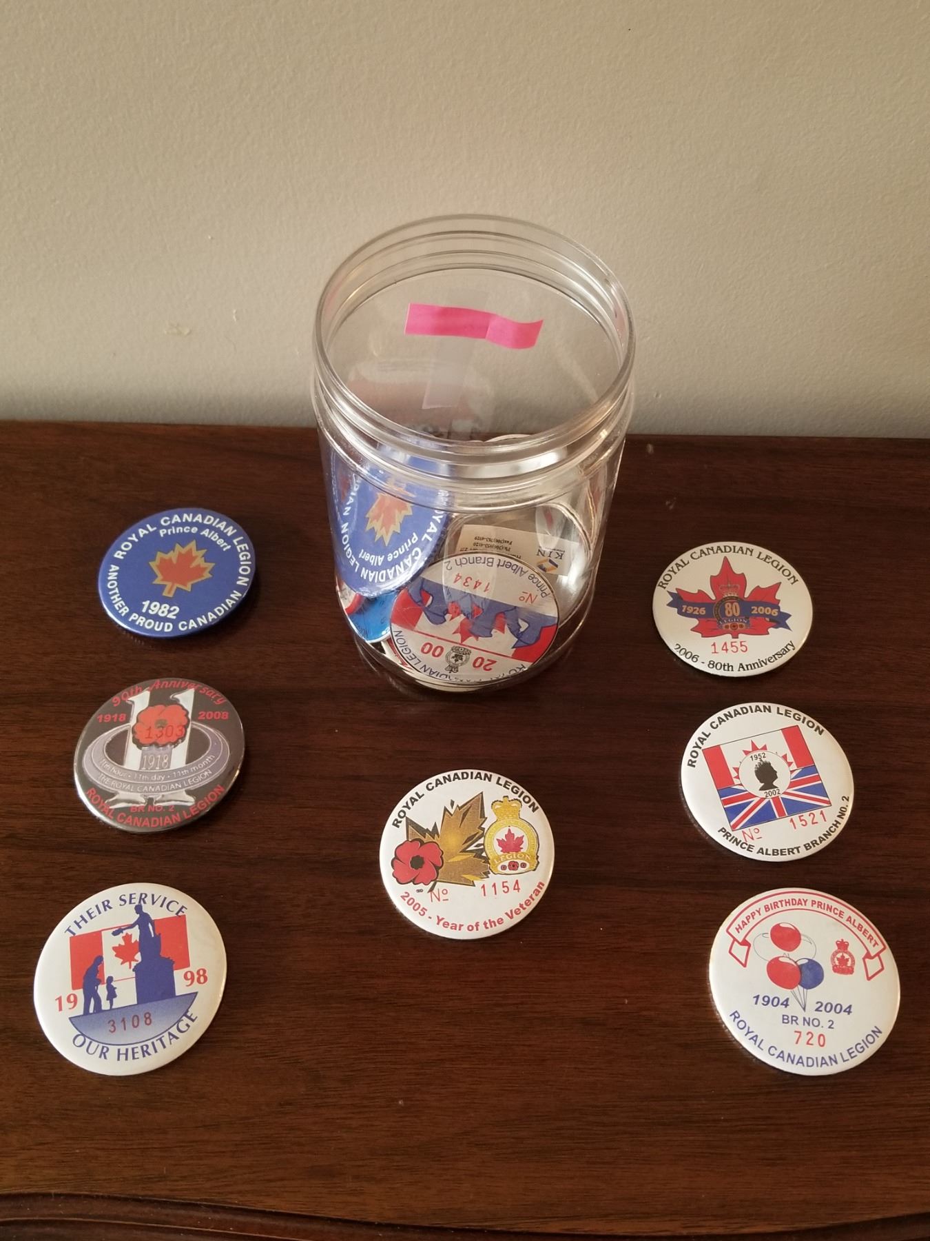 Container of Collector Royal Canadian Legion Buttons