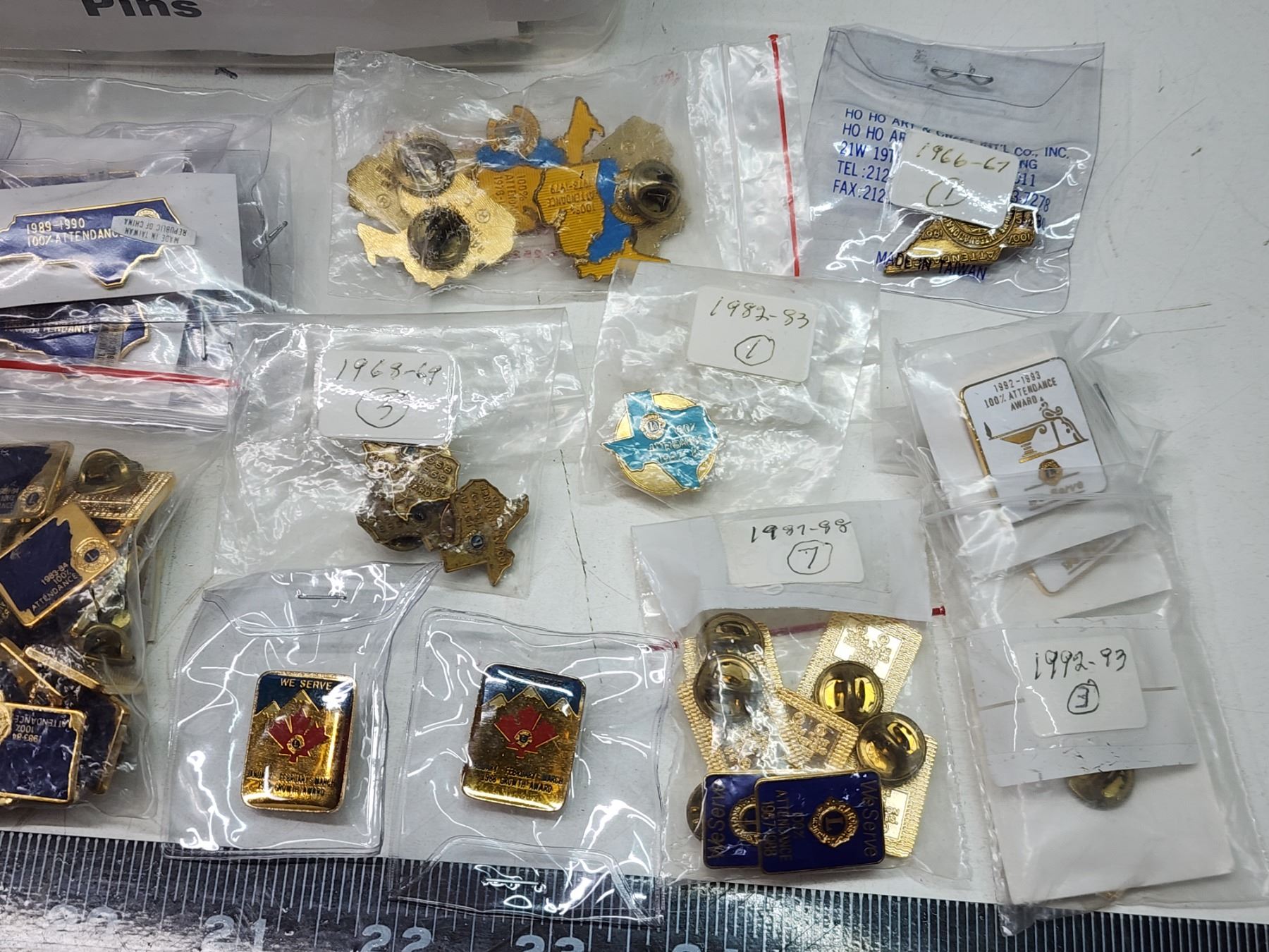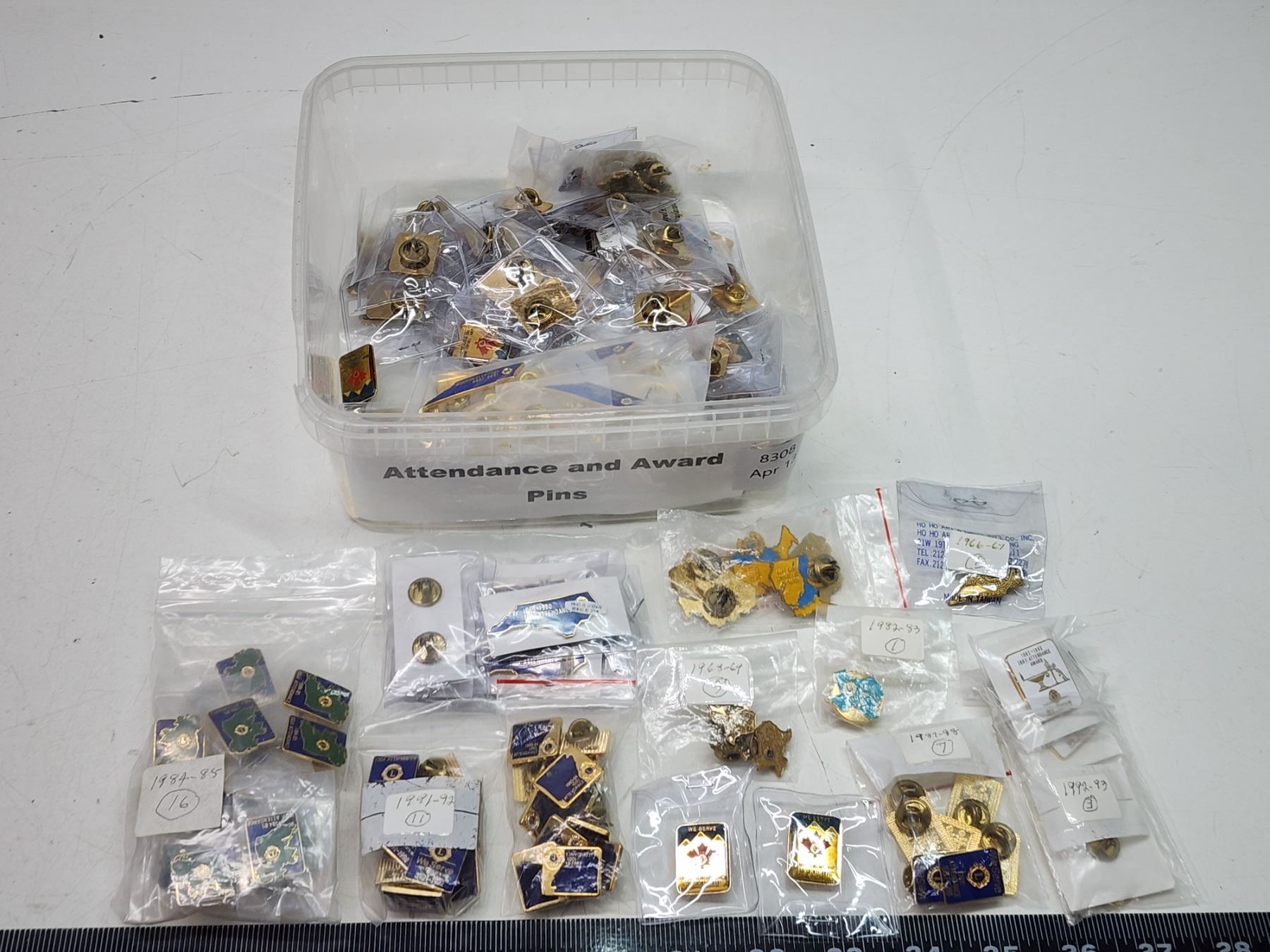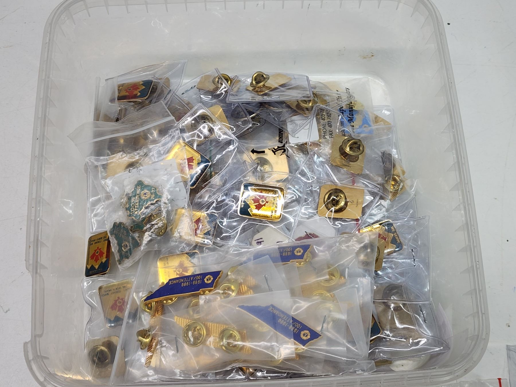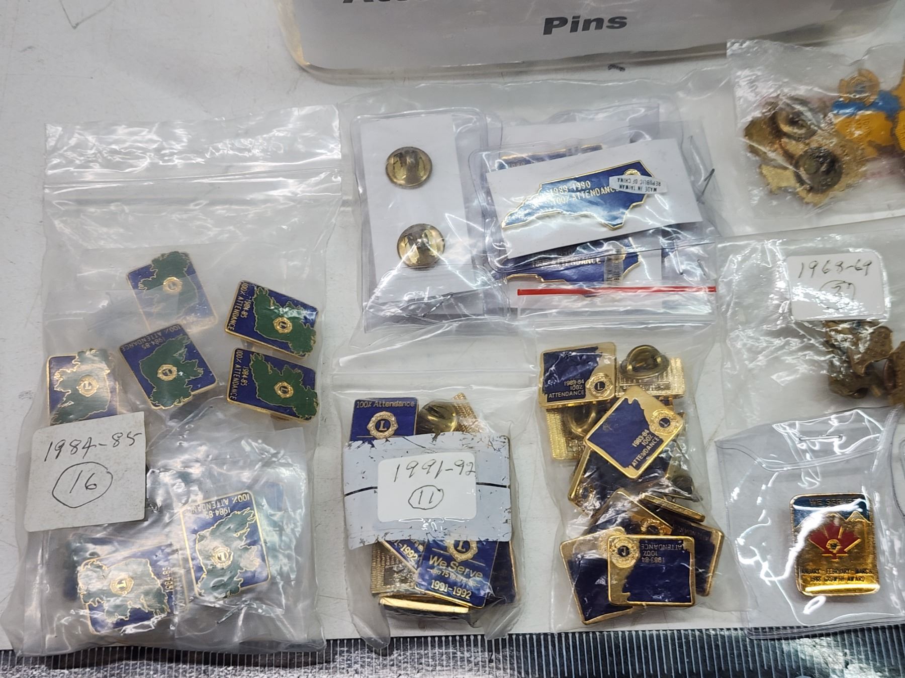 Container of Lions Club collector's pins - Attendance pins