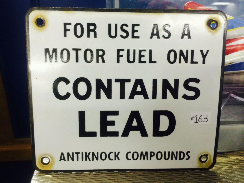 "Contains Lead" Porcelain Coated Gas Pump Sign