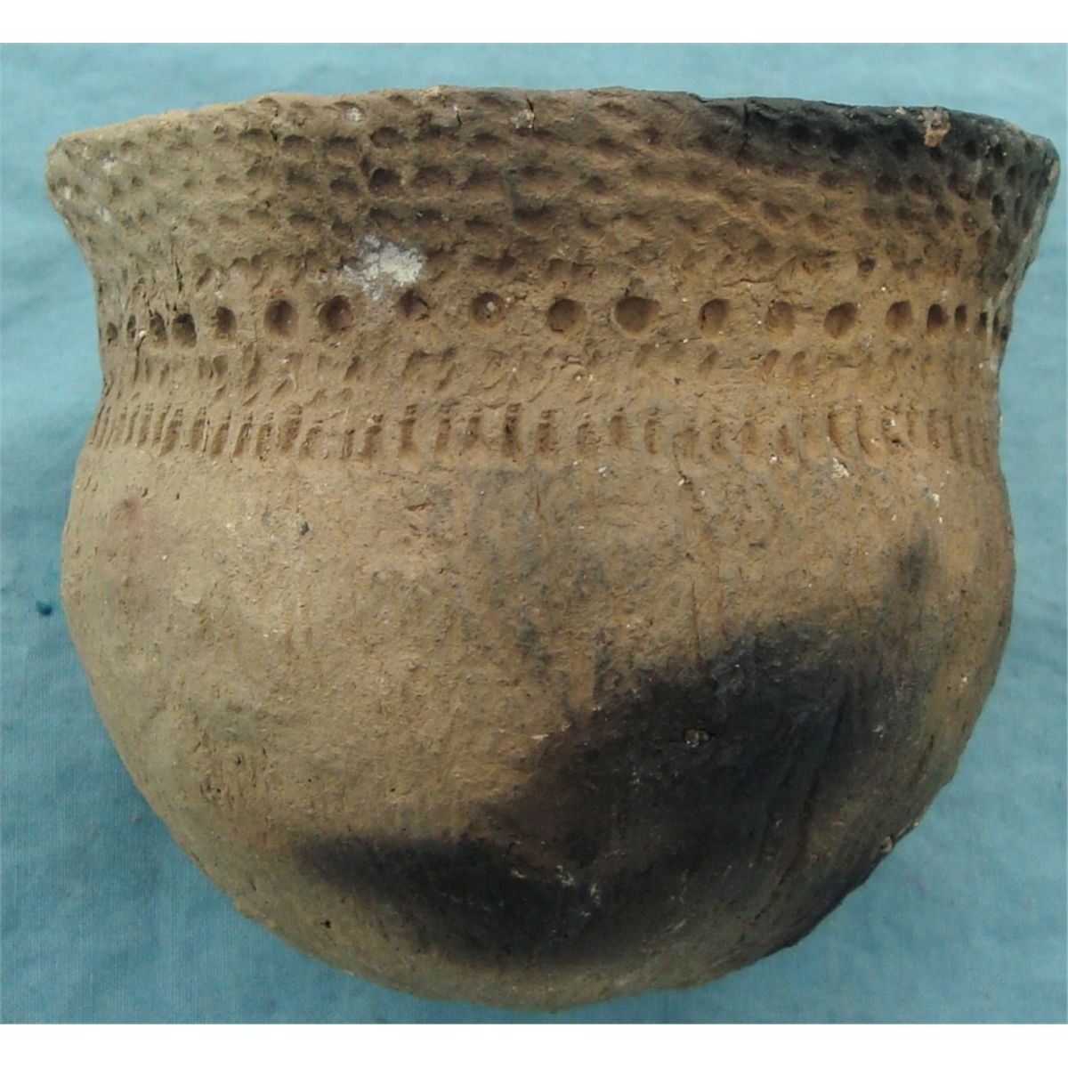 Approx. 3" tall w/3 1/2" diameter. It was produced in the 1960's as a represtentative piece from the Mound Building culture.