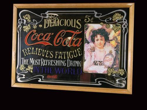 Contemporary framed 5 Cent Coca-Cola mirror, 35 inches long x 24 inches wide. Good Cond.