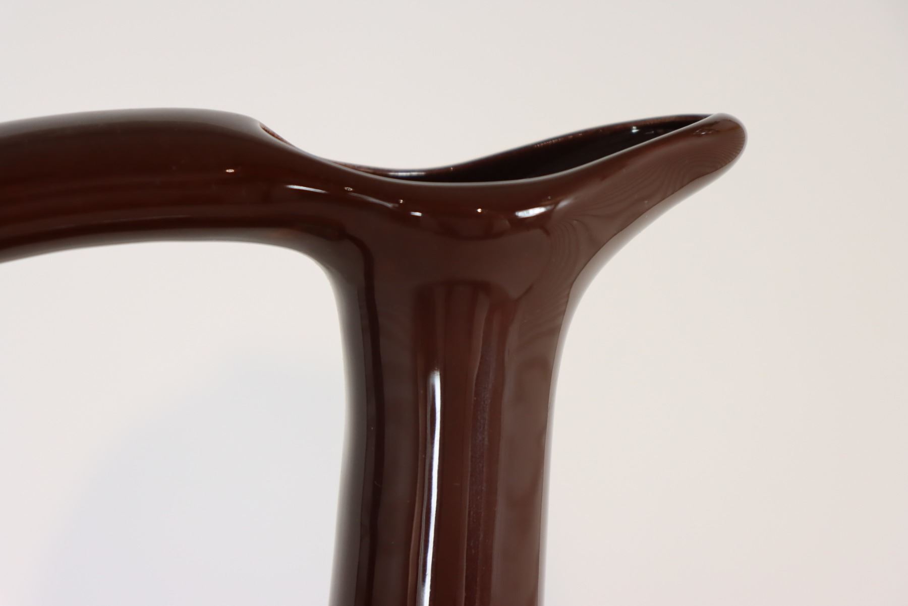 Southwestern hohokam vessel or jug designed with long handle and spout, with bear motif, signed Kopp on bottom.