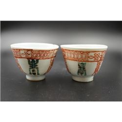 A Pair of Late Qing Dynasty to Republican Era Famille-Rose "Shou" Cups . Condition as is, shown in p