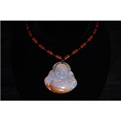 A deep sea agate"laughing Buddha"pendant + beads Chain.