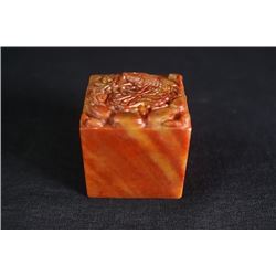A Soapstone Carved "Lotus Pond and Koi" Seal Material with "Deng Bi Shan" Mark.