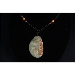 Hetian Green White Jade "Rat and Money" Pendant with Necklace.